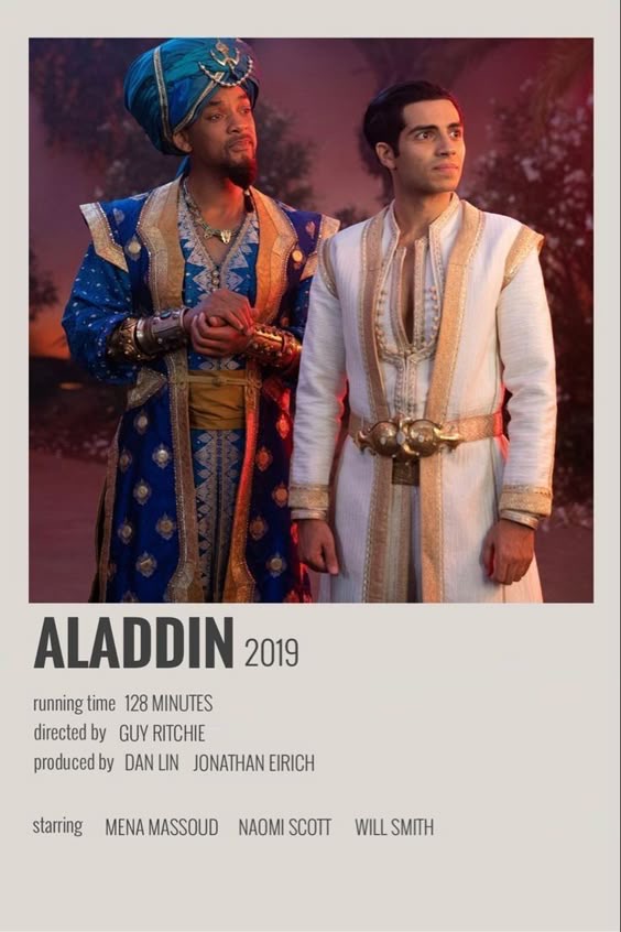 Aladdin is a live-action musical fantasy film that retells the classic tale of a street-smart young man who discovers a magical lamp and befriends the powerful Genie inside. As he navigates love, adventure, and the challenges of royalty, Aladdin learns about courage, honesty, and the true meaning of friendship. With vibrant visuals and catchy music, the film brings the beloved story to life for a new generation.